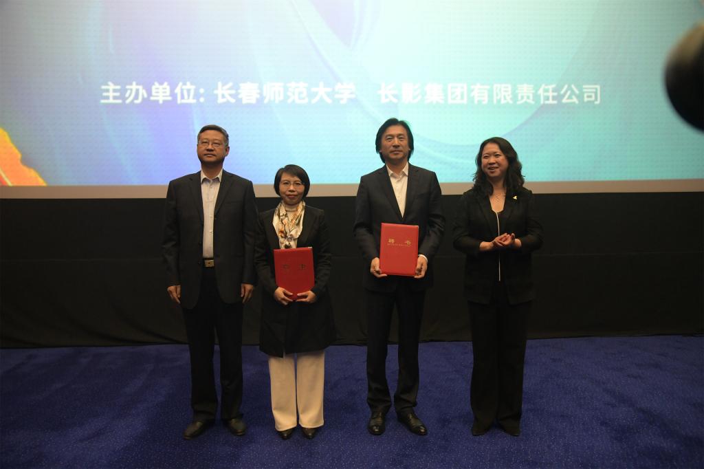 长影集团监事会主席王亮,吉林省教育厅副厅长单联成为上海大学上海电影学院院长、中国高等院校影视学会影视产业与管理专业委员会副主任、《电影理论研究》执行主编何小青,吉林大学新闻与传播学院副院长、教育部高校戏剧与影视学专业教学指导委员会委员、中国高等教育学会影视传媒专业委员会秘书长孔朝蓬颁发学术委员聘书。