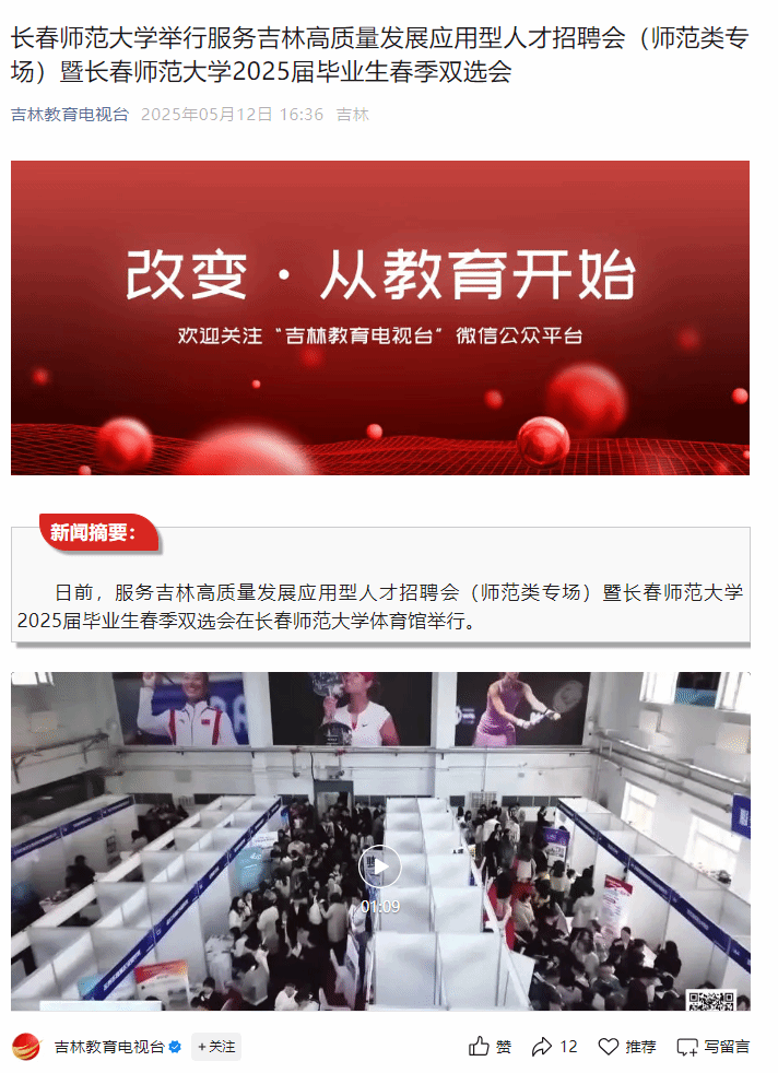 日前,服务吉林高质量发展应用型人才招聘会(师范类专场)暨久久久久国产成人精品亚洲综合_亚洲精品国产A久久久久久_精品亚洲日韩国产精品一区二区三区_AV无码久久无码_国产精品国产亚洲精品看不卡_午夜亚洲精品国产乱码久久久人妻_久久久99无码精品一区二区三区_欧美日韩精品国产精品一区二区三区高清免费2025届毕业生春季双选会在学校体育馆举行。吉林教育电视台对学校活动进行报道。