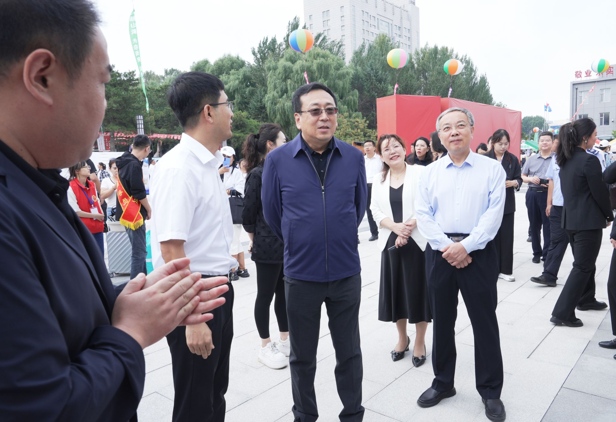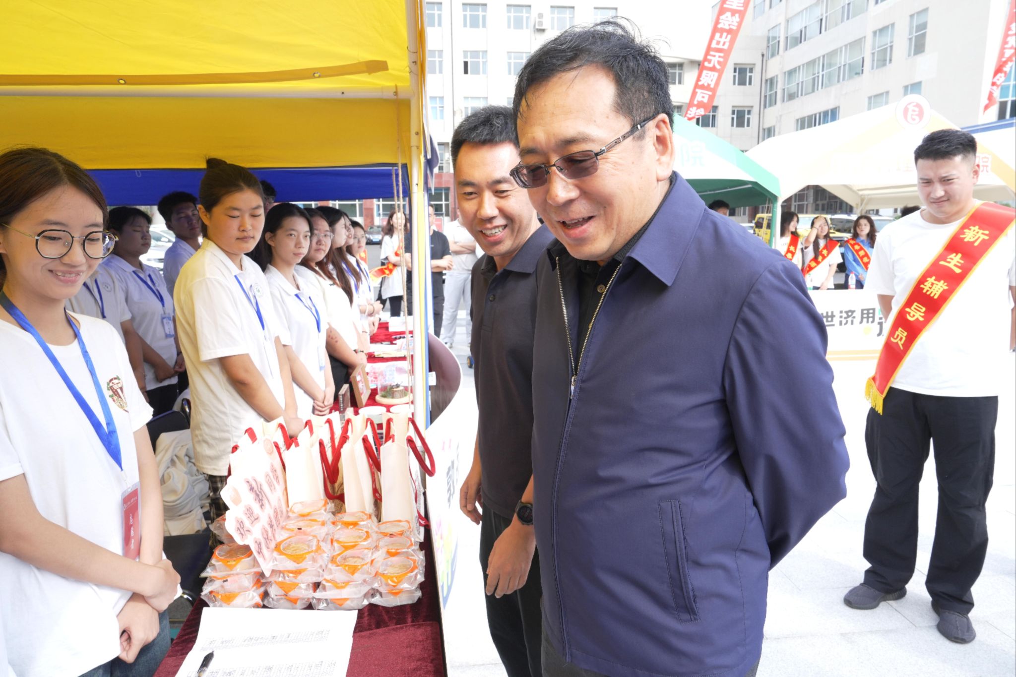 在乐群校区迎新工作现场,刘多一行详细了解新生报到流程、报到情况,并慰问各岗位迎新工作人员和志愿者。